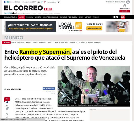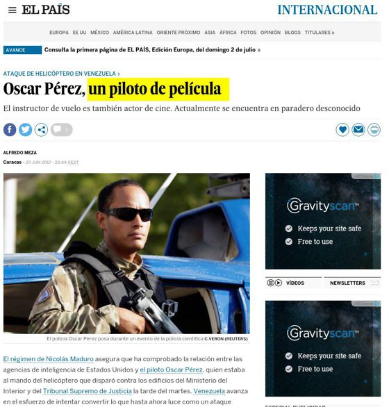 "Oscar Pérez, un pilote de film”, tel est le titre qu'a choisit El País d'Espa gne pour faire son portrait.