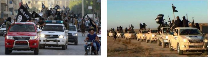 La scène ressemble fort souvent à celle que les agences nous montrent lorsque le groupe terroriste Daesh, mal nommé État Islamique ou ISIS, prend une ville en Syrie ou en Irak, pour semer la terreur dans la population.