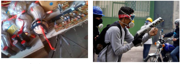 Cette utilisation d'armes artisanales, mais potentiellement meurtrières, leur permet de se présenter face au monde comme de simples « manifestants » alors qu'ils agissent comme des combattants qui remettent en cause la loi, les règlements et même ce que la population vénézuélienne admettrait contre eux, selon les principes de l'usage progressif et différencié de la force et le respect des droits humains.