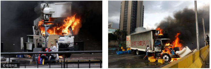 Les camions « réquisitionnés » sont utilisés comme barricade pour couper l'autoroute principale de Caracas ainsi que d'autres voies de circulation. Ils finissent très souvent détruits. Peu de médias signalent que ces camions sont détournés ou volés par ce groupe de jeunes opposants ; ils évitent d'utiliser des termes négatifs à leur égard, bien que, à plusieurs reprises, leurs propres collègues journalistes aient été la cible de leurs attaques.