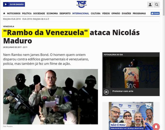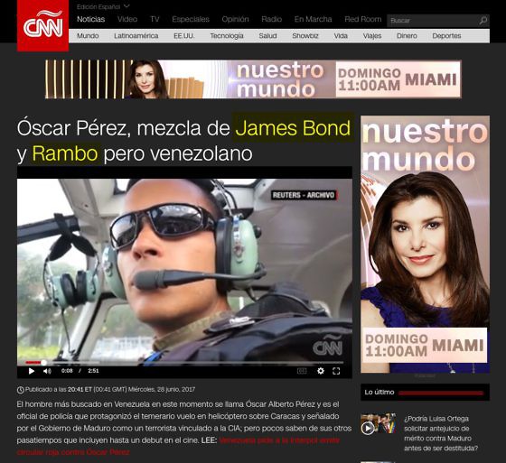 Un grand nombre de médias ont fait le choix de présenter Pérez comme un héros, un "Rambo” vénézuélien ou un James Bond, profitant du fait qu'il a été le protagoniste d'un film il y a quelques années.