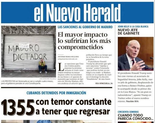 El Nuevo Herald, Miami : "Les sanctions (US) contre le gouvernement Maduro : les plus compromis subiront le plus grand impact"