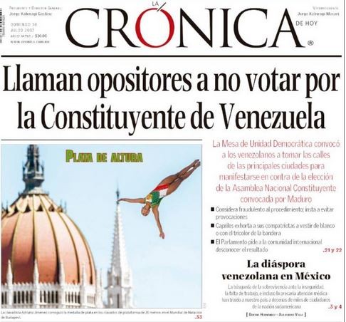 La Crónica, Mexico : "Les opposants appellent à ne pas voter pour la Constituante du Venezuela"