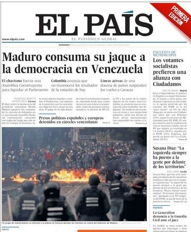 El País, Madrid : "Maduro consume son échec à la démocratie au Venezuela" (sic)