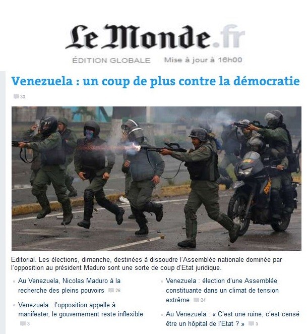 Ci-dessous, une sélections des pires titres de la presse internationale d'aujourd'hui sur le Venezuela