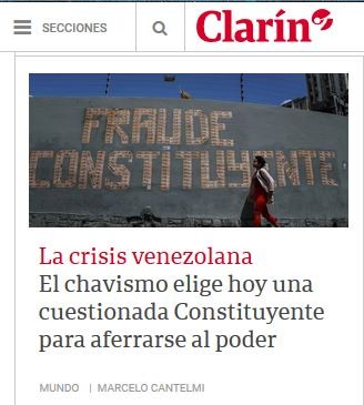 Clarín, Buenos Aires : "La crise vénézuélienne : le chavisme élit aujourd'hui une Constituante remise en question pour s'accrocher au pouvoir"