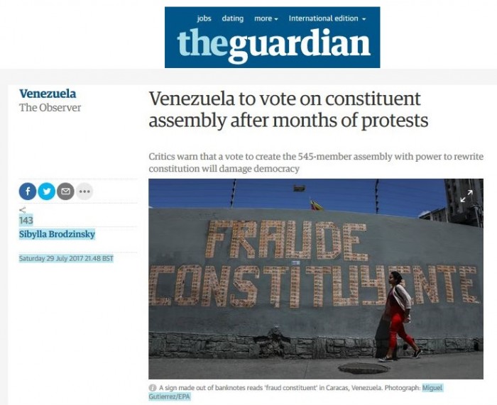 The Observer/The Guardian, Londres: "Le Venezuela vote pour une Constituante après des mois de protestations"