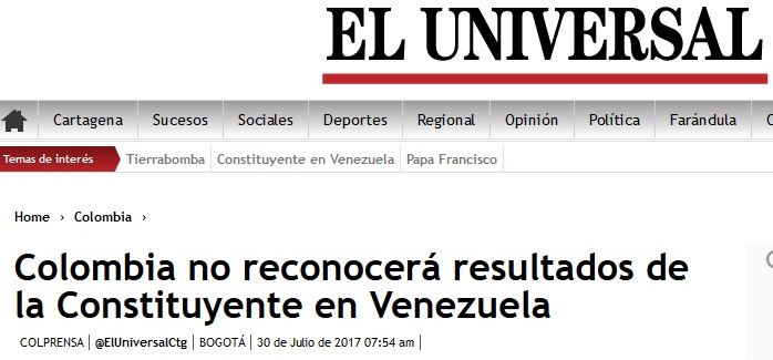 El Universal, Bogota : "La Colombie ne reconnaîtra pas les résultats de la Constituante au Venezuela"