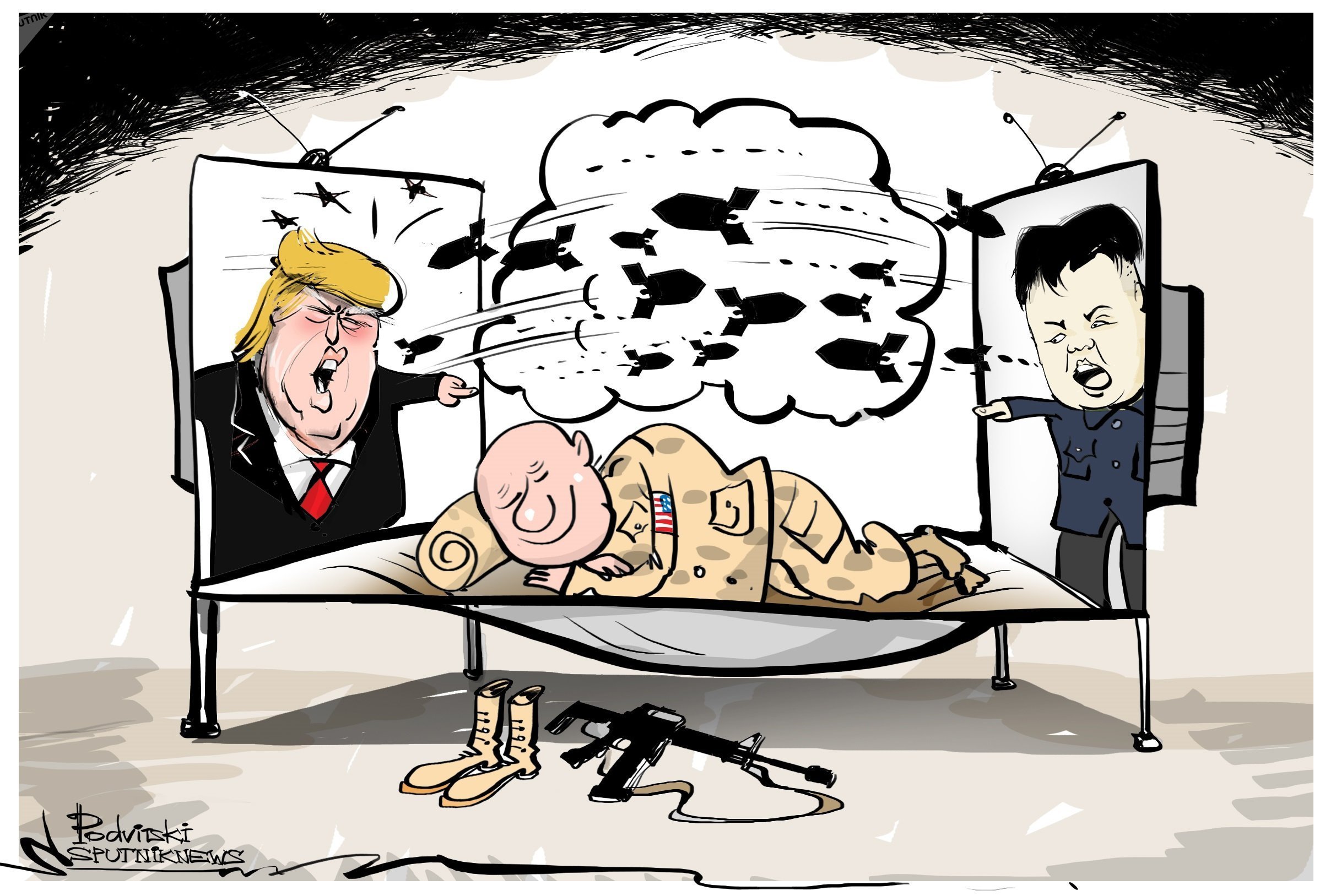«Personne au QG du commandement interarmées dans le Pacifique ne s'arrache les cheveux. Le calme et le professionnalisme règnent, déclare une source de Defense News. Quant au déclenchement imminent d'une guerre nucléaire, ce n'est pour l'instant que la rhétorique de Washington».