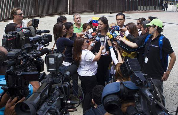 Scène de la vie quotidienne sous la dictature bolivarienne : la dirigeante d'extrême droite Maria Corina Machado, impliquée dans plusieurs tentatives de coup d'État depuis 2002, explique aux médias « baillonnés » qu'il n'y a pas de liberté au Venezuela et que plutôt que d'attendre des élections, il faut relancer les confrontations « non-dialogantes » (sic) pour forcer le président élu à partir.