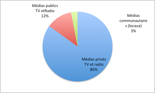 Une étude menée en 2015 par le Ministère de la Culture et par des sociétés privées de mesures de rating montre par ailleurs que les médias privés, d'opposition, - en particulier Venevision, Televen et les chaînes du câble - totalisent 85 % d'audience, les chaînes publiques et communautaires (strictement locales) se partageant les 15% restants.