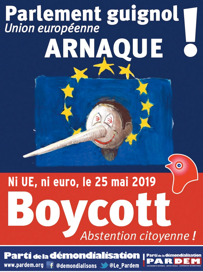 Les choses sont donc claires. L'Union européenne est au cœur de l'augmentation de la fiscalité sur les produits pétroliers, entre autres. Donc, le 26 mai 2019, on bloque les élections européennes en refusant de voter ! Je signe l'appel :
