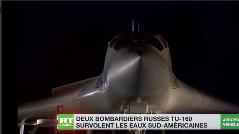 Le 11 décembre, une centaine de pilotes et de soldats russes sont arrivés à l'aéroport international de Caracas à bord d'avions militaires. La Défense vénézuélienne a expliqué vouloir élever le niveau d'interopérabilité des aviations des deux pays. Outre un avion de transport An-124 et un avion de ligne Il-62,  deux bombardiers stratégiques Tu-160 participent aux exercices. «Il s'agit de l'avion de combat le plus grand et le plus lourd au monde», précise Kyrill Kotikov, envoyé spécial de RT France au Venezuela. «Cette puissance est absolument incroyable», témoigne-t-il encore, alors que l'un des deux aéronefs aux allures de Concorde prend son envol.