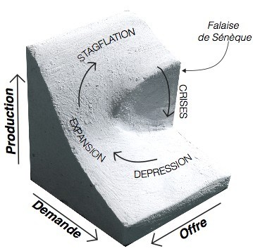 C'est durant sa phase de crise qu'une société s'effondre. L'effondrement correspond à ce que j'ai appelé la « falaise de Sénèque » une appellation suggérée par l'italien Ugo Bardi (voir la figure du billet 93). Cette falaise correspond au palier de condensation des thermodynamiciens. Elle se situe donc au milieu de la phase de crise. Si on applique ce résultat à la société française actuelle, on doit s'attendre à ce que celle-ci s'effondre en 2023, soit à la fin du présent mandat présidentiel. Je laisse mes lecteurs juger de la pertinence d'une telle prédiction.