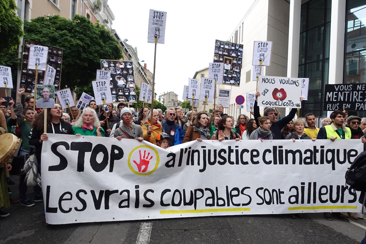 Mardi 28 mai s'est déroulé le premier procès des « décrocheurs » de portraits d'Emmanuel Macron. Le procureur a regretté « l'instrumentalisation » des tribunaux en « tribune politique », et s'est appuyé sur le climato-scepticisme de M. Trump. Autour du tribunal, les manifestations de soutien aux décrocheurs ont été nombreuses.