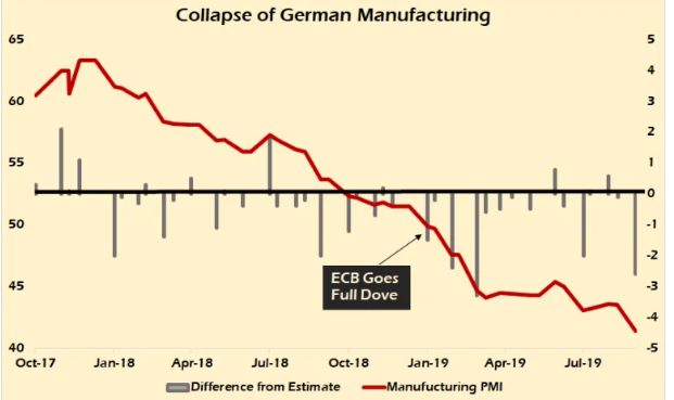 Cela ne devrait surprendre personne que la BCE soit aussi accommodante dès qu'elle a eu en main les données prouvant que l'économie allemande se contractait. Parce que sans l'Allemagne en expansion, il ne peut y avoir de soutien pour un euro stable, indépendamment du Brexit.