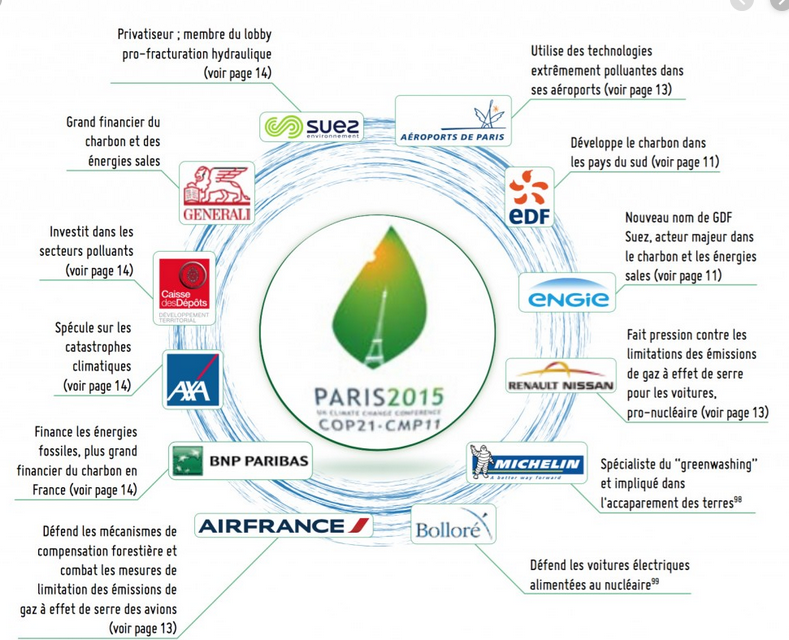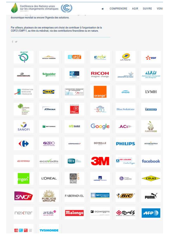 Dans le cadre de la COP 21, nous trouvions des sponsors dont les activités n'ont certainement pas été célébrées comme respectueuses de la planète. Mais comme l'argent n'a pas d'odeur...