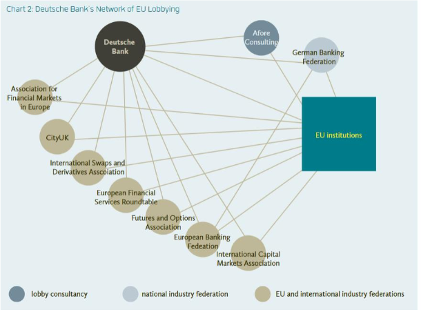 Dans le monde du lobbying, la palme revient à la haute finance internationale. A Bruxelles, par exemple, une puissante présence, organisée de manière systémique et en réseaux, infiltre les lieux (cf annexe).