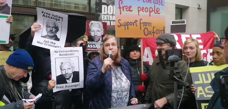 «C'est leur cour. Notre cour est la cour de l'opinion publique internationale ! Partout, on prend de plus en plus conscience de la gravité du crime perpétré contre Julian Assange. Nous voulons que la classe ouvrière défende un homme dont la liberté est d'une importance capitale pour chaque homme, femme et enfant sur cette planète... Nous n'accepterons pas ce simulacre de procès sur des accusations inventées de toutes pièces: 175 ans pour espionnage, pour avoir commis le crime d'être journaliste !»