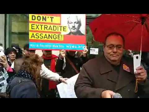 Le secrétaire national du Socialist Equality Party (Royaume-Uni), Chris Marsden, s'est adressé à la manifestation, expliquant: «Il est écrit sur le devant de cette cour, Dieu et Mon Droit ! Il est également dit qu'elle a été créée en 2011. Ce fut la dernière année où Julian Assange a joui de sa liberté.»