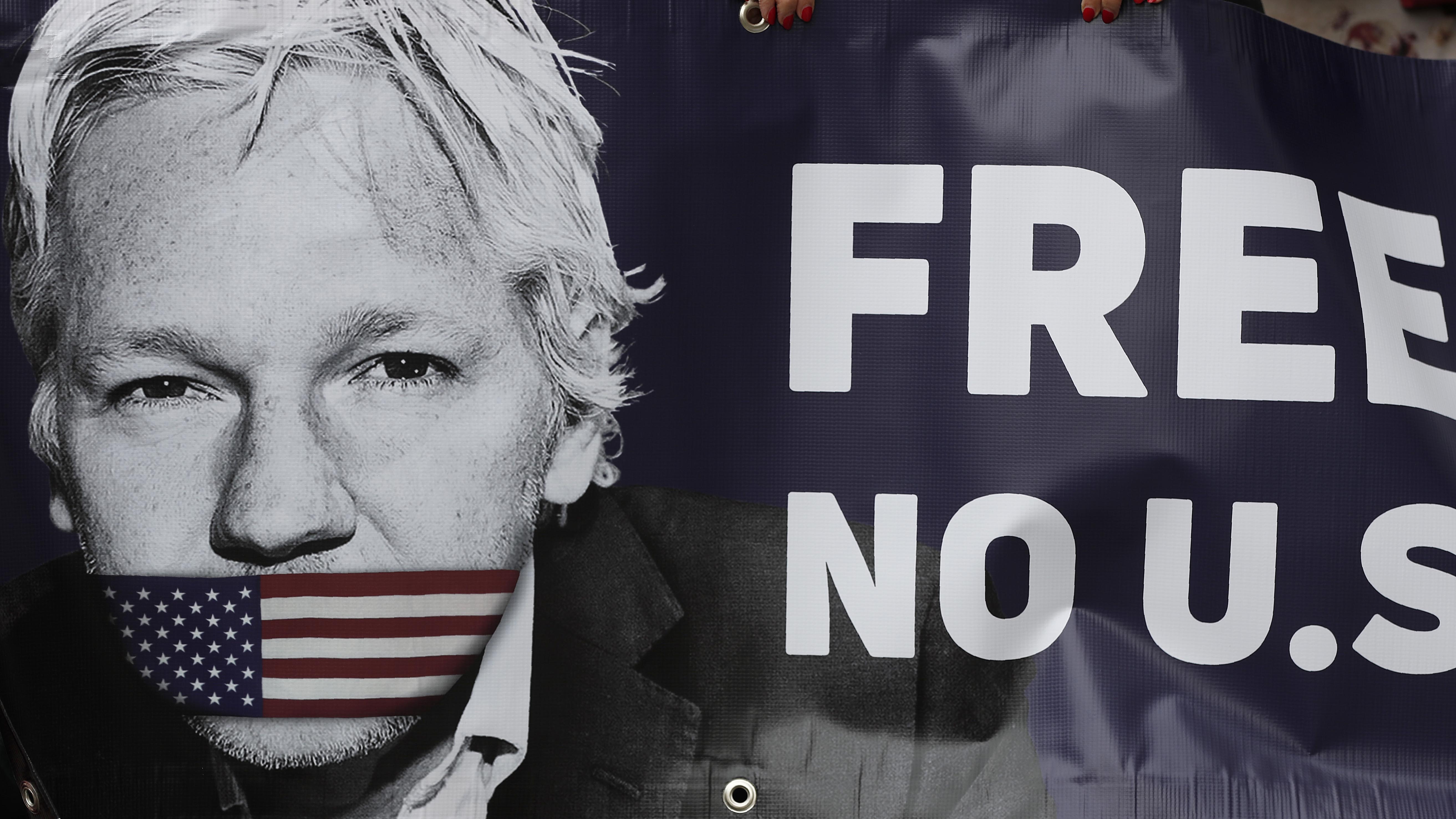 Les manifestants brandissent une banderole exigeant la liberté de Julian Assange (AP Photo / Frank Augstein)Les déclarations de Melzer confirment que le gouvernement britannique, agissant au nom du gouvernement américain du président Donald Trump, vise rien de moins que la destruction psychologique et physique d'Assange.