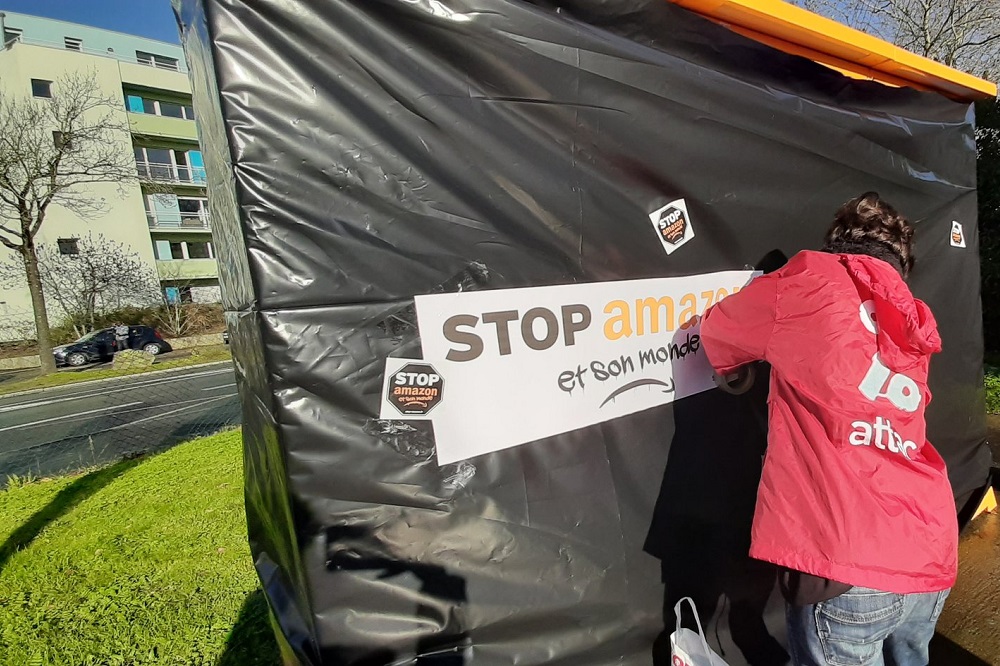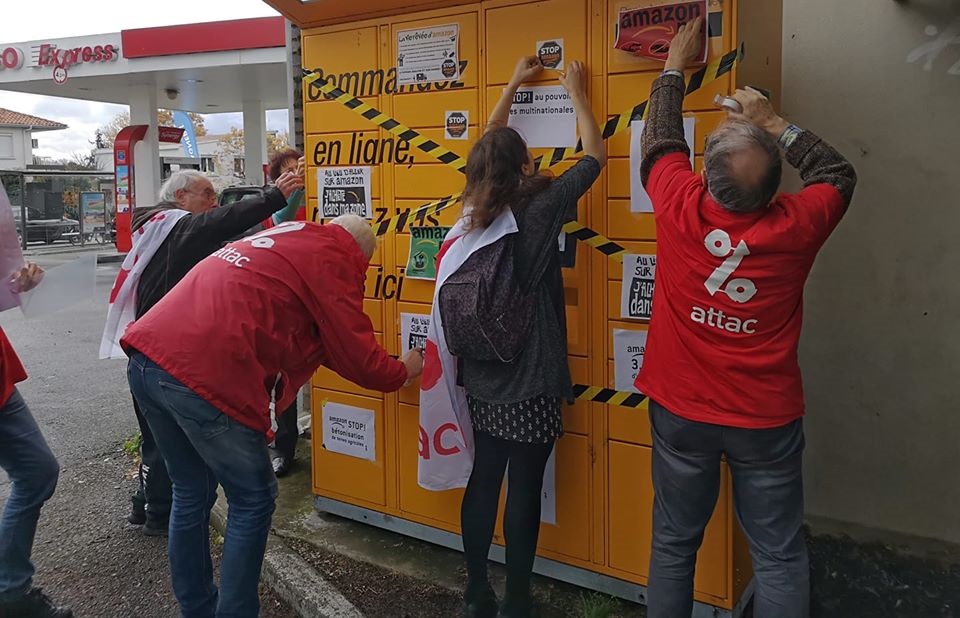Toulouse, 12 h Des militants d'Attac ont bloqué les consignes Amazon : « Un locker qui disparaît, c'est une librairie qui renaît ! », avec comme slogan.