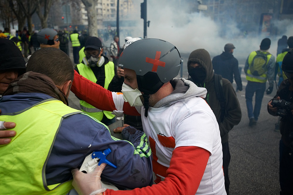 Logiquement, c'est tout d'abord au milieu des nuages que l'on peut se trouver mal, après que les grenades ont été lancées à la main ou propulsées à l'aide de lanceurs. « En manifestation, il m'arrive souvent d'aider des personnes qui vomissent ou qui ont l'impression de ne pas pouvoir respirer », raconte Charly [*], street medic à Paris depuis 2017. Ariane [*], infirmière à Clermont-Ferrand, a commencé à soigner les personnes blessées ou en malaise dans les manifestations de Gilets jaunes en février, avec une équipe d'amies. Elles ont constaté que les symptômes se répétaient et que les problèmes respiratoires pouvaient être graves pour les asthmatiques : « Les crises sont difficiles à gérer car la ventoline écarte les bronches et accentue l'effet des gaz. »