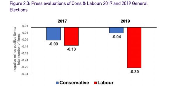 For Labour, levels of negative newspaper coverage were more than double those seen during the 2017 general election campaign.