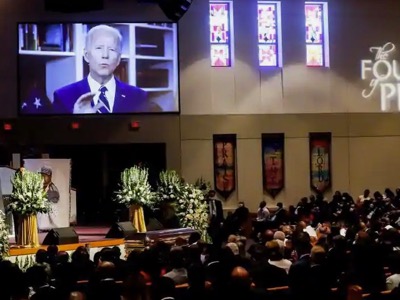 Le probable candidat du parti démocrate, Joe Biden -dont la proximité avec le Pentagone lui a déjà valu d'être élu vice-président de Barack Obama- s'exprime par vidéo lors des obsèques de George Floyd. Les médias rendent compte d'une cérémonie antiraciste. Or, le service d'ordre de la célébration chrétienne a été confié à Nation of Islam, solidaire de la communauté noire. Cette organisation vit en circuit fermé et interdit les mariages interraciaux à ses membres.