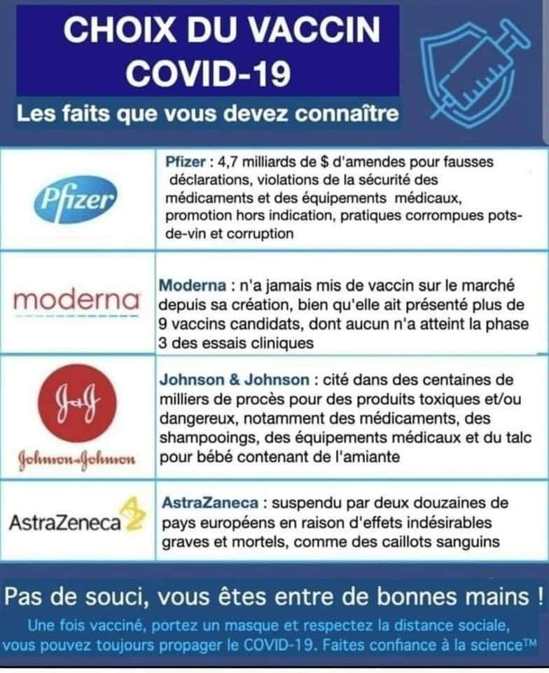 Rappelons que le vaccin H1N1 avait été retiré après une cinquantaine de décès de même que celui de la grippe aviaire en 1976 et que de façon générale, un essai thérapeutique d'une nouvelle drogue est stoppé au-delà d'une trentaine de décès. Le nouveau monde est bien là, oubliant le consentement éclairé, le principe de précaution et la valeur de la vie, d'une vie.