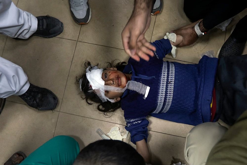 Beaucoup de femmes et d'enfants blessés ont été transportés à l'hôpital al-Aqsa dans des charrettes tirées par des animaux & des véhicules de particuliers, en raison de la situation désastreuse du système de santé.