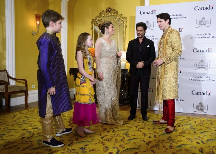 Justin Trudeau et sa famille rencontrant un natif de l'Inde