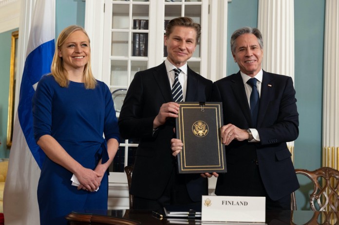 Antony Blinken in signing ceremony for Finish defense pact that will allow U.S. soldiers ability to be stationed on Finnish soil. [Source: fi.usembassy]