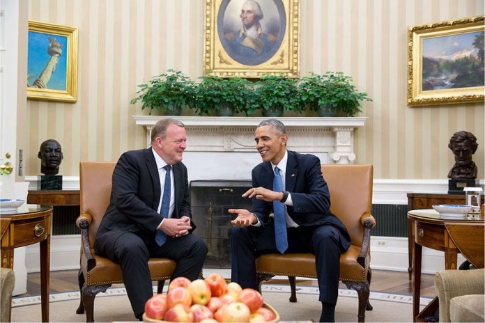 Obama and Lars Loekke Rasmussen in the Oval Office. [Source: commons.wikimedia.org]