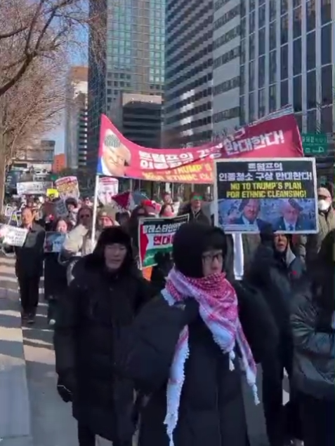 Longue manifestation de soutien à la Palestine dans les rues de Séoul en Corée du Sud