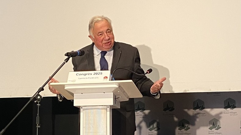 Le président du Sénat Gérard Larcher lors d'un congrès à Lyons-la-Forêt en mars 2025.