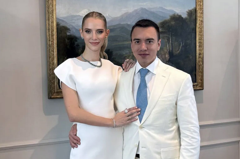 Colistière de Noboa, Veronica Abad a été élue – et non nommée – vice-présidente en 2023. Que faisait-elle à ses côtés, personne ne le sait, peut-être même pas Noboa lui-même. La « mort croisée » imposant d'organiser des élections en urgence, Noboa, comme beaucoup d'autres, improvisa. Avec une telle complice, il ratisserait large sur sa droite : Abad n'a rien d'une modérée. Anti-corréiste furibonde, très conservatrice, y compris sur le rôle et le travail des femmes, elle se fit remarquer, pendant la campagne, en voyageant à l'étranger et en s'y faisant photographier en compagnie de Santiago Abascal (président du parti d'extrême droite espagnol Vox) et de Nayib Bukele, le despote et gardien de prison salvadorien.