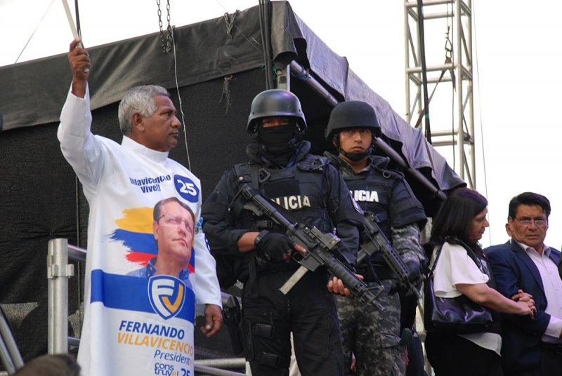 On en est là quand le candidat Fernando Villavicencio, quatrième ou cinquième dans les enquêtes d'opinion, est assassiné par un commando de tueurs. Il sortait d'un meeting, dans le centre nord de Quito. « Journaliste d'investigation » élu député, Villavicencio avait deux spécialités : la lutte « contre la corruption » et la démolition du « corréisme ». Au-delà de son image d' « ange blanc », il nageait quelque peu en eau trouble. Il entretenait une étroite relation avec Diana Salazar, la procureure générale de l'Etat. Il maintenait des liens tout aussi étroits avec les « services » étatsuniens.