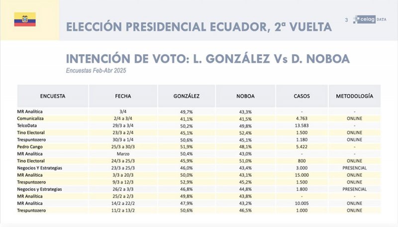 Avec le recul, personne ne compte sur assez d'éléments probants pour affirmer que Luisa González l'a emporté. S'agissant de Noboa, le constat est tout aussi vrai, tant l'évolution des votes entre les deux tours apparaît totalement incohérente. Nulle part et sans doute jamais un tel phénomène n'a été enregistré.