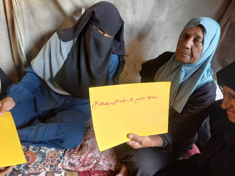 « Par un après-midi gris, alourdi par les souvenirs de l'exil et le bruit du vent frappant les tentes de l'ouest de Deir al-Balah, vingt femmes déplacées se sont réunies dans une petite tente du « camp des amis » à Deir al-Balah. L'objectif de cet atelier, organisé par l'équipe de l'UJFP, était de leur offrir une chance unique de découvrir une force intérieure longtemps recouverte par la poussière de la souffrance, en les formant aux techniques de flexibilité cognitive et au changement des schémas de pensée négatifs ancrés par les pressions du déplacement et les conditions de guerre.