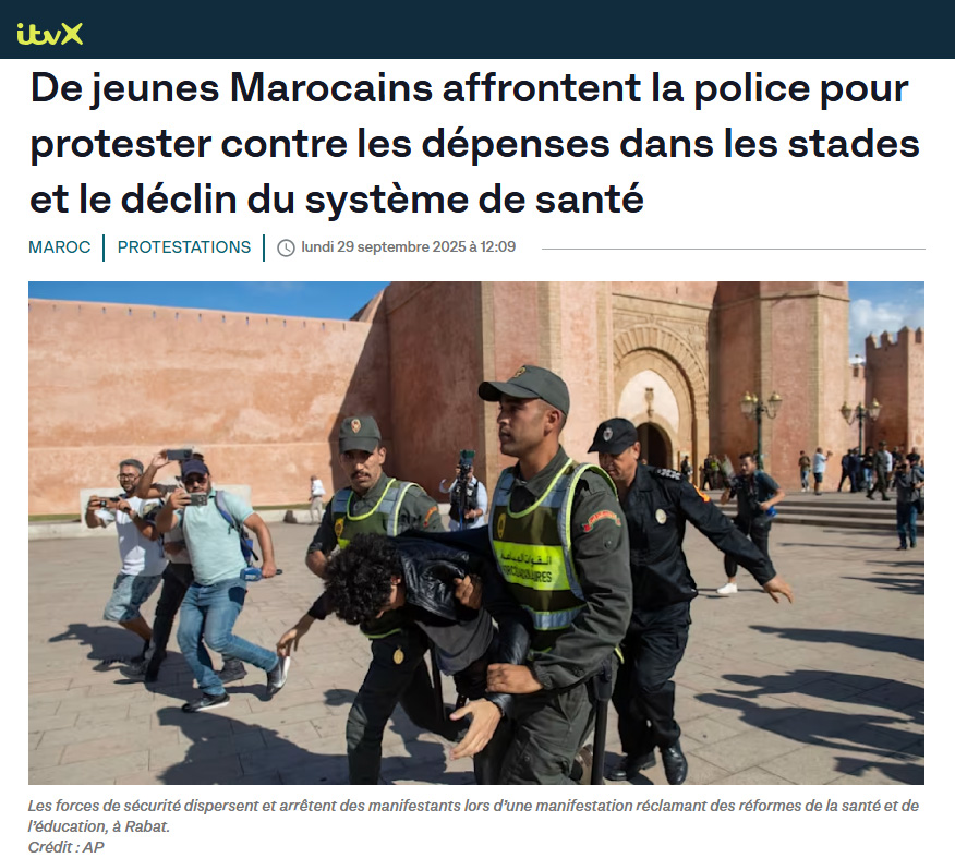 Les manifestations de masse observées dans les rues du Maroc, qui risquent de se poursuivre, n'ont pas émergé du néant, mais ont résulté de politiques historiques qui ont contribué à un taux de chômage record chez les jeunes et à la détérioration des services sociaux essentiels, notamment les soins de santé et l'éducation. Les dépenses extravagantes pour la Coupe du monde et les infrastructures de divertissement donnent une image claire des priorités de l'État et de son incapacité à investir dans la population et ses moyens de subsistance.