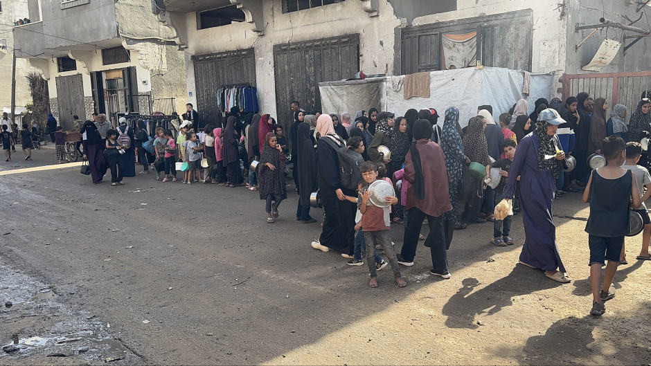 Les enfants attendent la nourriture et les femmes libérent l'espoir : le travail humanitaire de l'Ujfp, le 10 octobre, à l'annonce du cessez-le-feu non appliqué.