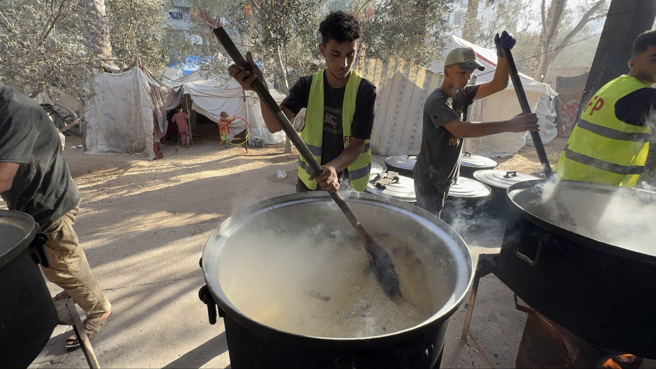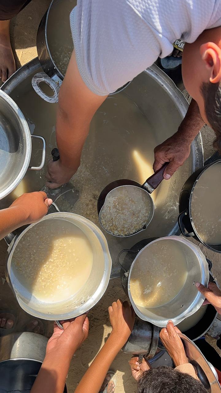 Au cœur de cette tragédie, les équipes de l'UJFP poursuivent leur travail dans Al-Mawasi de Khan Younès, où s'entassent des milliers de familles déplacées qui ont tout perdu : maisons, fermes, et même la capacité d'assurer un repas quotidien à leurs enfants. Là, les repas chauds que les équipes préparent et distribuent deviennent une véritable bouée de survie. Chaque matin, des enfants se tiennent depuis l'aube dans de longues files devant les points de distribution, les yeux emplis d'attente, posant aux membres des équipes la même question simple et douloureuse à la fois : « Qu'allez-vous cuisiner pour nous aujourd'hui ? » Une question qui révèle l'ampleur de la perte vécue par ces petits, eux qui n'ont plus de cuisine chez eux, plus de feu qui brûle, plus de table familiale qui les réunit - seulement ce que leur apportent les efforts humanitaires visant à les maintenir en vie.