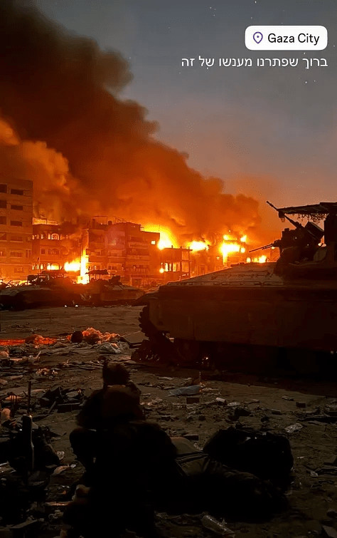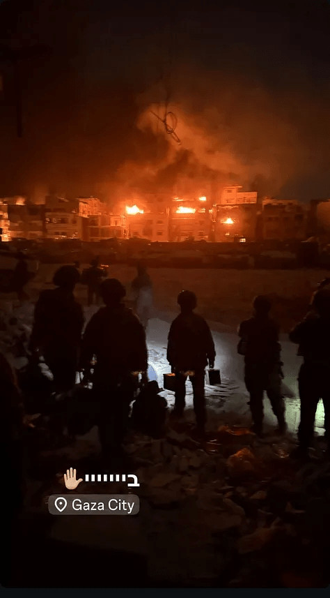 L'ampleur de l'incendie criminel perpétré dans la ville de Gaza dans la nuit du 9 octobre et au petit matin du 10 octobre - de jeudi soir à vendredi, juste après l'accord de cessez-le-feu, mais avant son approbation par le cabinet israélien - était plus importante qu'à tout autre moment suivi par Drop Site pendant l'assaut sur la bande de Gaza. Les auteurs ne se sont pas limités à une seule unité, et l'incendie ne s'est pas limité à un quartier spécifique. Drop Site News a identifié des membres de l'armée israélienne issus de différentes brigades, dont les brigades Golani, Givati, Nahal et la nouvelle brigade ultra-orthodoxe Hashmonaim. Ces derniers ont publié des dizaines de photos et de vidéos de bâtiments ravagés par les flammes lors du retrait de Gaza vers la «ligne jaune» définie par l'accord Trump, toujours à l'intérieur du territoire de Gaza.