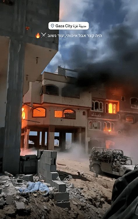 Les maisons des Palestiniens en flammes ont également servi de toile de fond aux soldats pour partager leurs opinions sur l'avenir de la présence israélienne à Gaza, certains exprimant leur soulagement de partir : «Au revoir et ne plus jamais revoir [ce qui était] ma maison récemment».