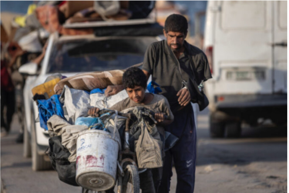 26 septembre 2025 – Les enfants sont les plus vulnérables dans les guerres, accablés de responsabilités bien au-delà de leur jeune âge. Au lieu des pupitres d'école et des jeux d'enfance, ils font maintenant la queue en attente d'eau et de nourriture, et plus récemment, ils se sont retrouvés confrontés à des conditions des plus éprouvantes lors du déplacement forcé avec leur famille – Photo : Mahmoud Abu Hamda