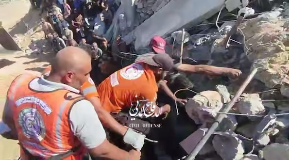 Les équipes de la protection civile continuent à récupérer, sans équipement adéquat les corps des Palestiniens assassinés lors des derniers bombardements israéliens sur Gaza, qui ont fait au moins 109 victimes, dont 46 enfants.