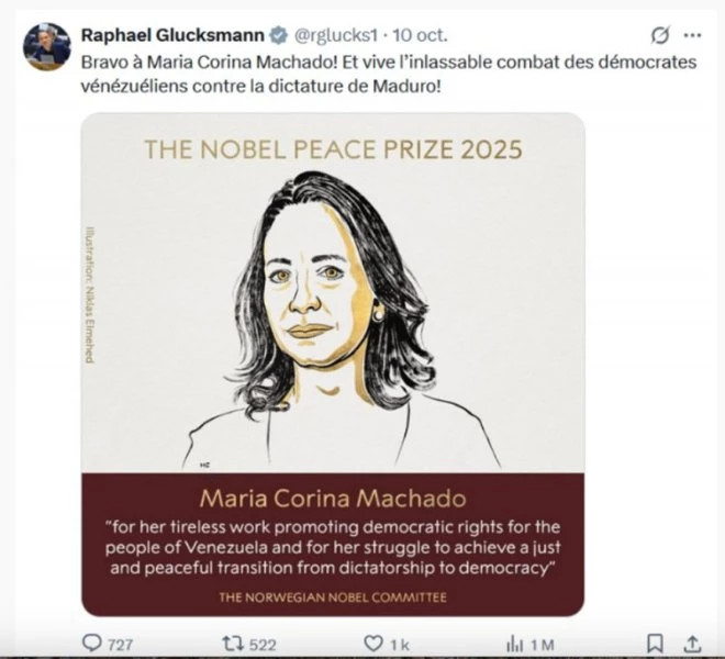Trump a estimé ne pas avoir besoin d'un accord du Congrès pour valider des opérations militaires ou menées clandestinement par la CIA contre le Venezuela ou d'autres pays (rajoutant dans son collimateur la Colombie et son président de gauche Gustavo Petro). En Amérique latine, les gouvernements inféodés au Bureau ovale - Argentine, Equateur, Paraguay, Pérou, Salvador, Trinidad et Tobago, etc. - applaudissent plus ou moins discrètement. En France, d'Emmanuel Macron à Raphaël Glucksmann, la droite a fait implicitement de même en félicitant l'extrémiste vénézuélienne María Corina Machado, partisane d'un bombardement de son propre pays, pour son récent « Prix Nobel de la Paix » [1].