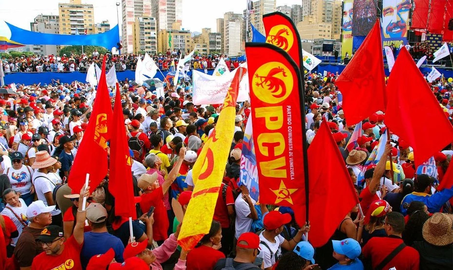 On aurait pourtant tort de croire que Maduro et le PCV allié au chavisme sont isolés. Au contraire. Au sein de la famille se réclamant du marxisme, ils jouissent d'un fort appui. C'est bien devant le Parti communiste du Brésil (PCdoB) et avec son assentiment que le président Luiz Inácio Lula da Silva, dénonçant la croissante pression américaine, déclare qu' « aucun président d'aucun pays ne doit dicter ce que seront le Venezuela et Cuba ». Proche de la famille communiste, le Mouvement des sans terre (MST) non seulement soutient Caracas, mais collabore directement avec les Communes et le gouvernement de Maduro. Les délégations - et non des moindres - ne manquent pas à Caracas, que ce soit, à haut niveau, pour des négociations officielles ou, à l'étage « solidarité », lors des Congrès antifascistes régulièrement organisés : Partis communistes cubain, colombien, péruvien, argentin, chinois, vietnamien, sud-coréen, philippin, népalais, sud-africain, espagnol, portugais, etc.