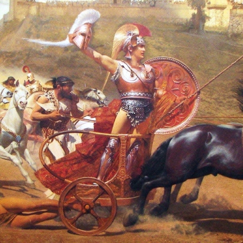 Dans la mythologie grecque, le héros Achille de l'Iliade semble, après examen, répondre à plusieurs critères du guerrier impie. Son cheval ne prédit-il pas sa mort devant les portes de Troie s'il tue Hector ? Mais il y a plus : Achille est connu pour ses accès de colère incontrôlables, d'abord contre Agamemnon, puis contre Hector, et il menace à plusieurs reprises le dieu Apollon.
